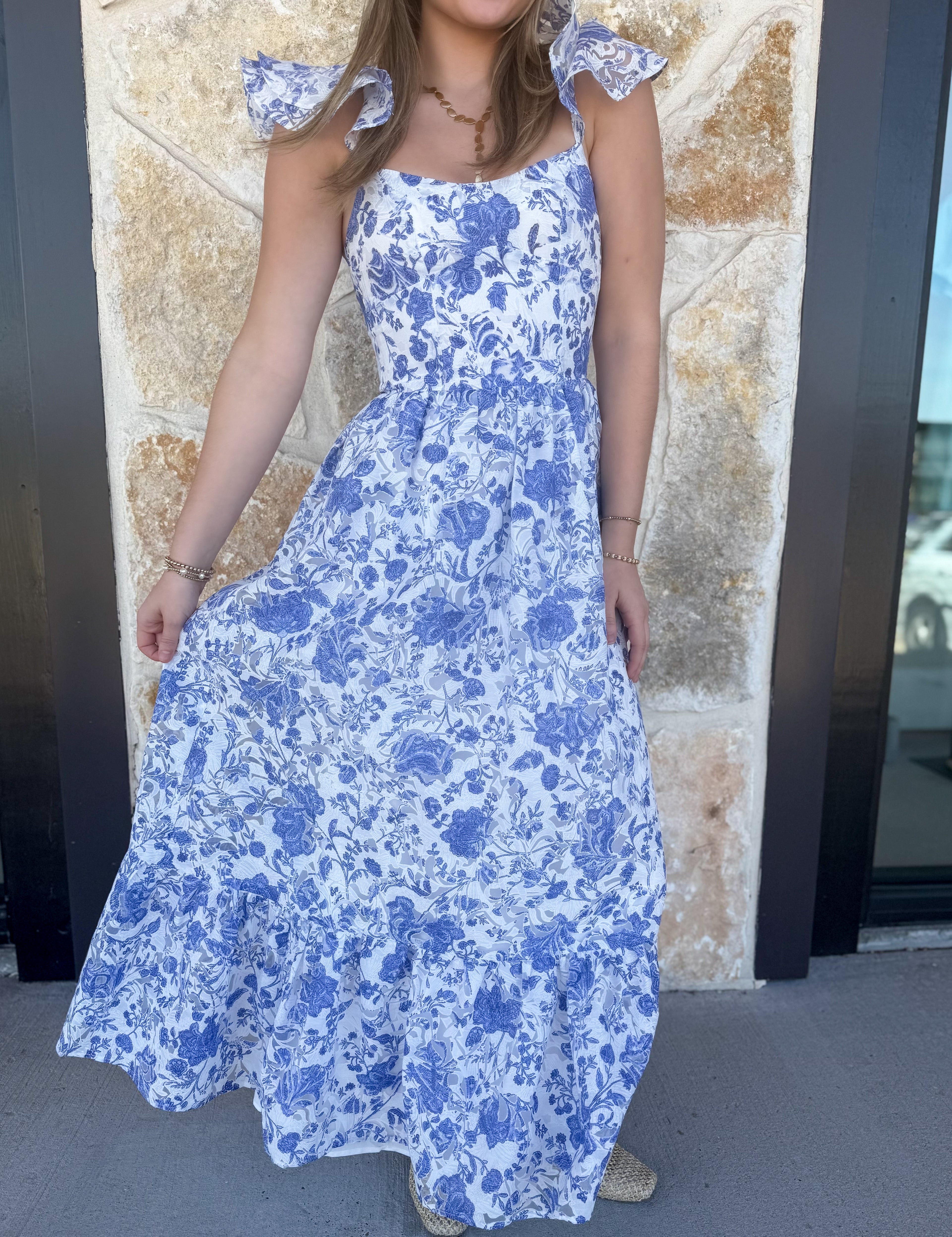 Floral Flutter Sleeve Maxi Dress